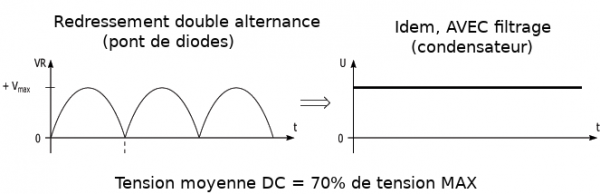 Sans cette précaution, la tension sortant du redresseur va atteindre des niveaux non désirés qui vont assurément endommager les équipements derrière, voir le redresseur lui-même…